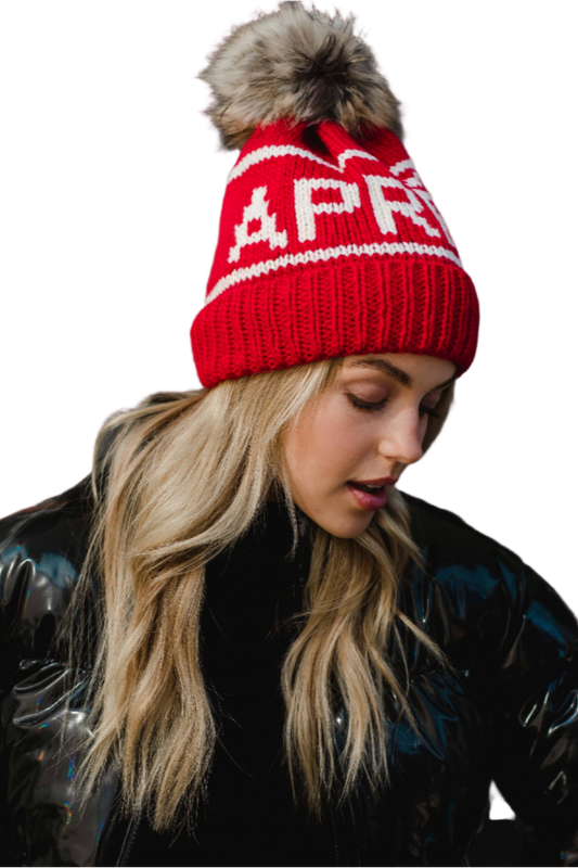 Red & White Apres Pom Hat