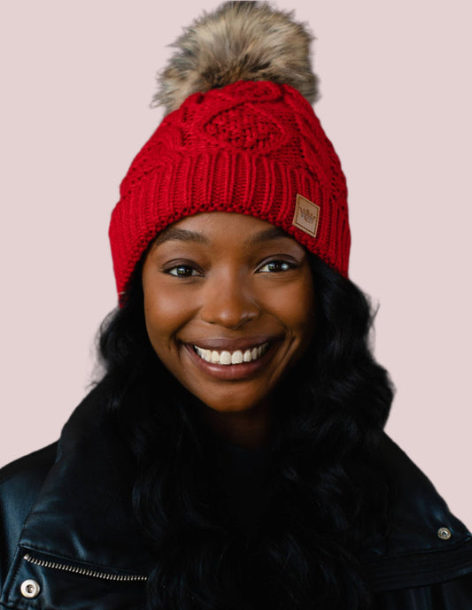 Sold outRed Cable Knit Pom Hat