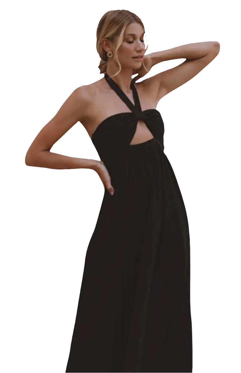Our undeniably show-stopping Penelope maxi dress is breaming with romantic details. Designed with smocked back and adorned with gathered detailing on the front it offers adjustable halter ties and impeccable fold-details on the maxi length hem.