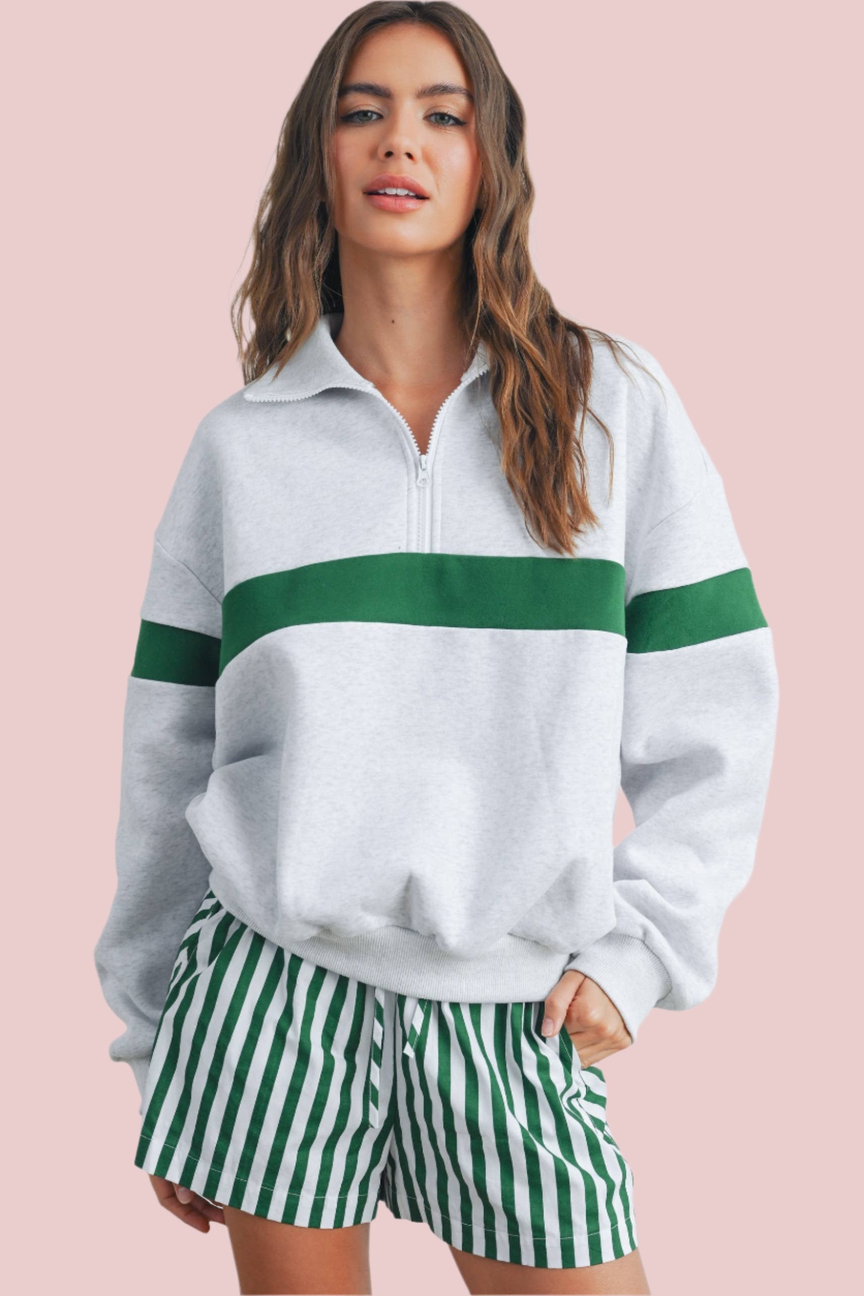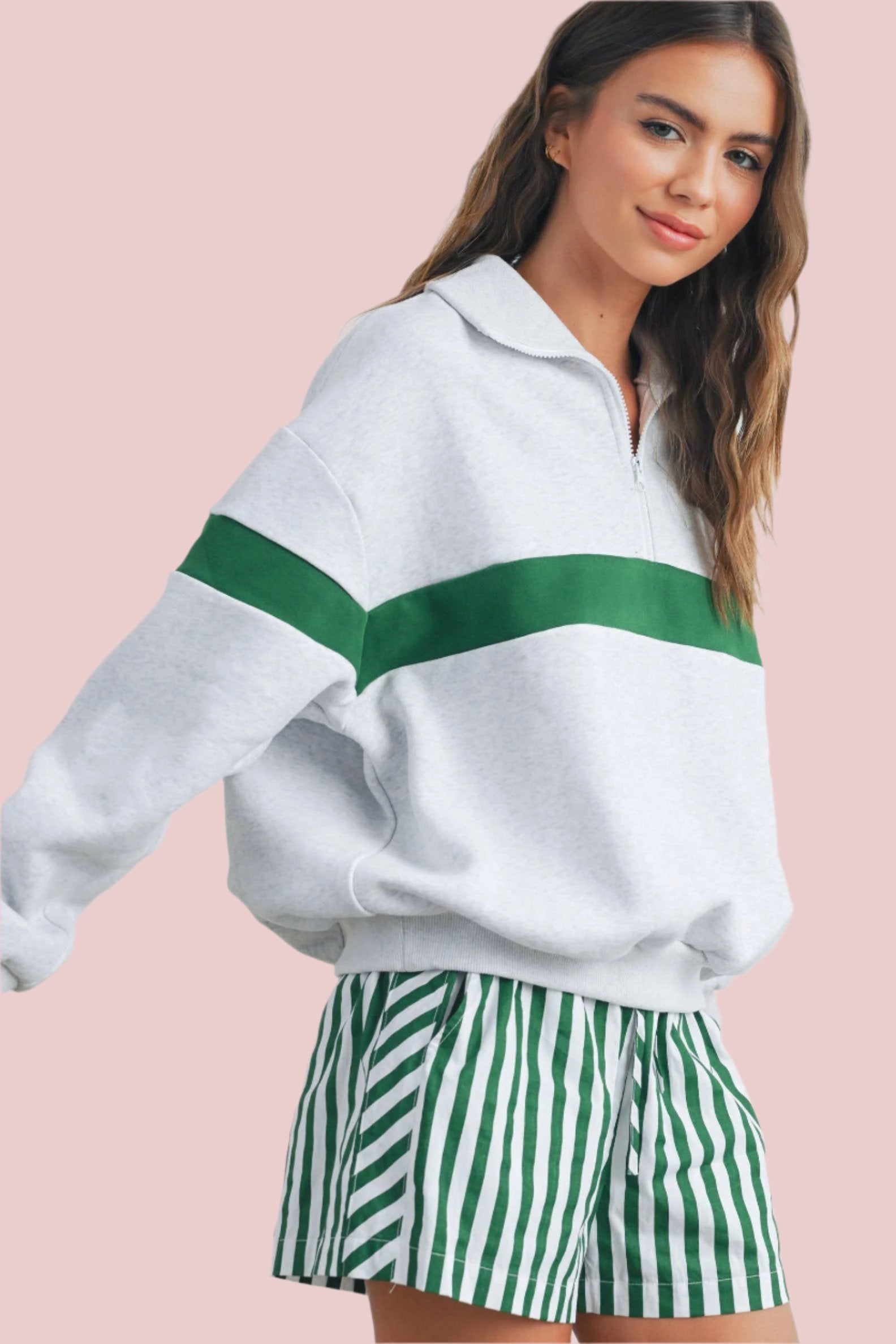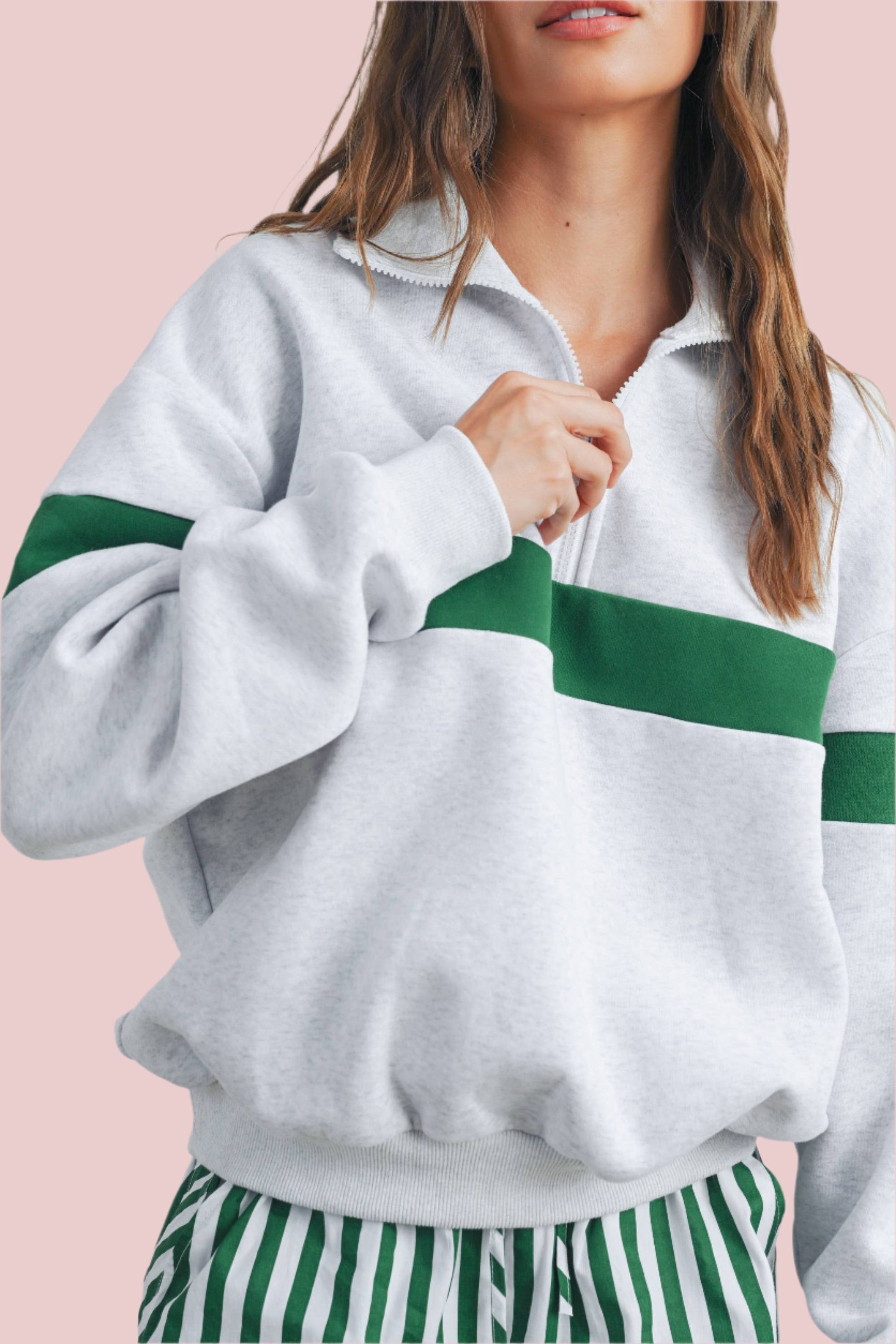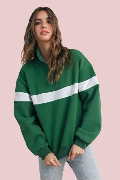 Elevate your casual wardrobe with our Two-Toned Half Zip Collar Sweatshirt. This stylish and versatile piece features a unique two-tone design, adding a modern twist to the classic sweatshirt. The half-zip collar allows for adjustable comfort and style, making it perfect for layering or wearing on its own. Crafted from soft and durable fabric, this sweatshirt ensures warmth and comfort for everyday wear. Whether you're heading out for a casual outing or relaxing at home, this sweatshirt is your go-to for effortless style and comfort.