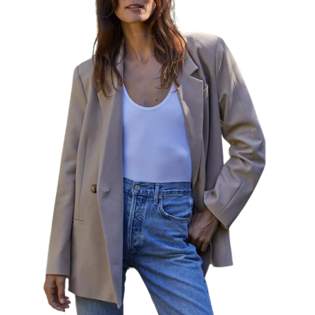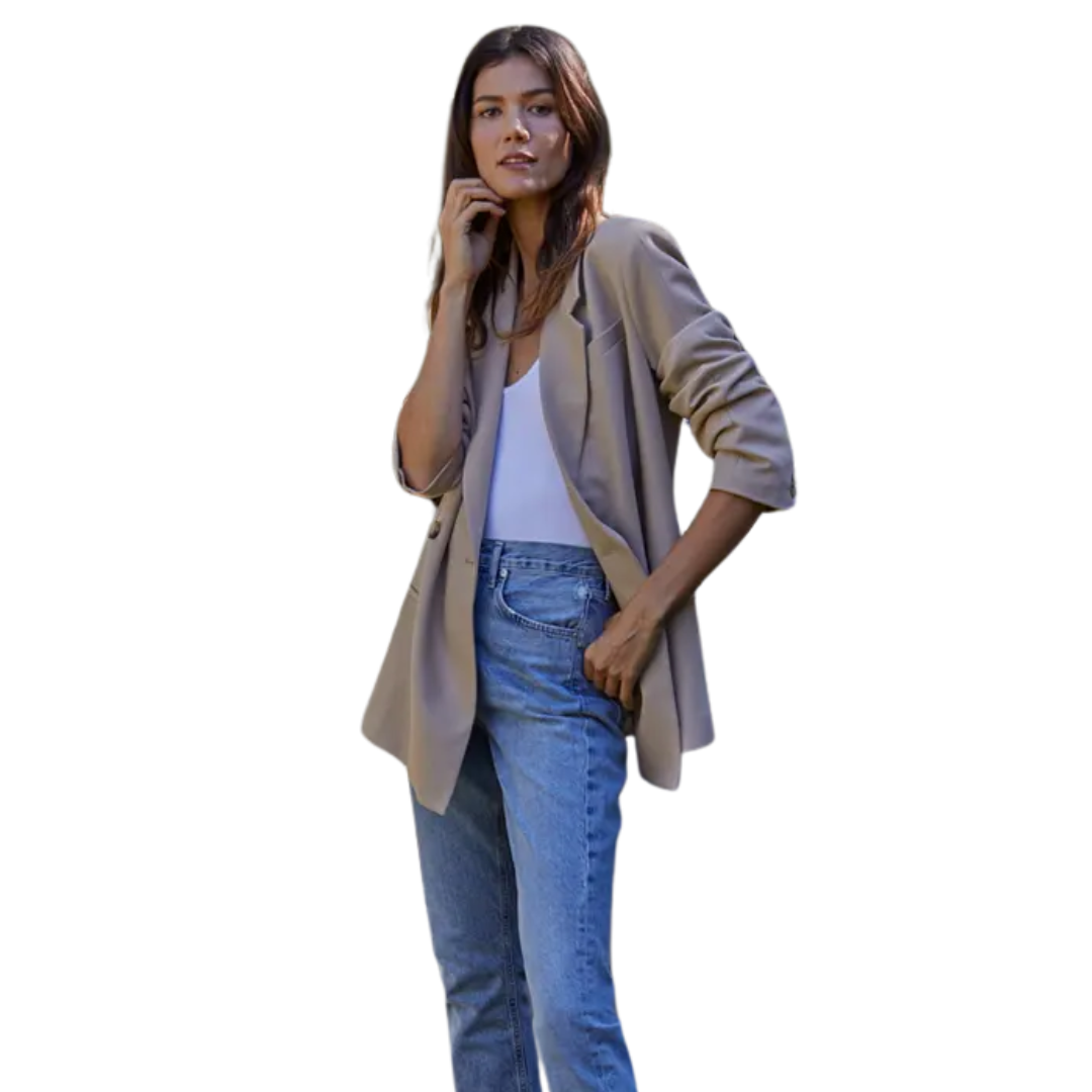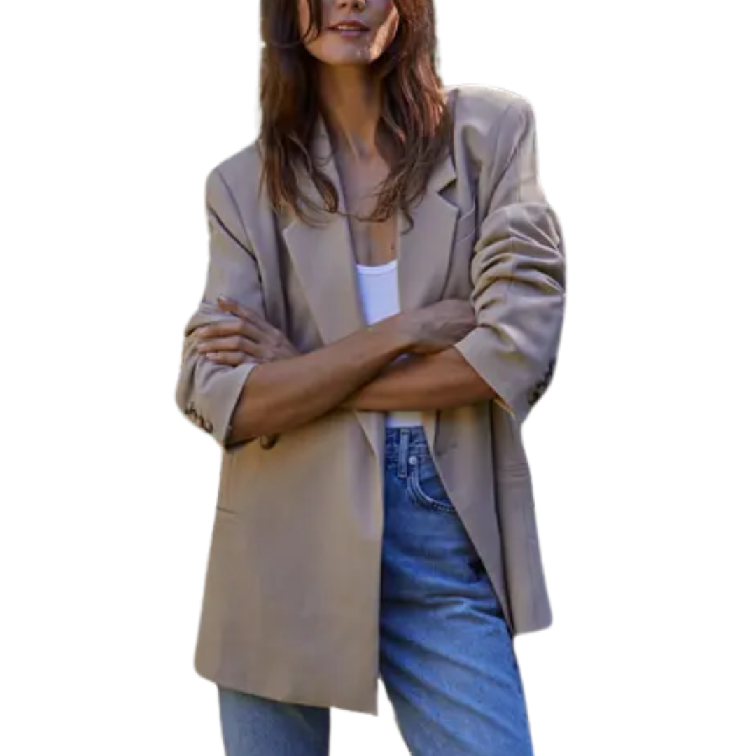 Elevate your wardrobe with this must-have Oversized Blazer featuring woven fabric, long sleeves, and shoulder pads. Perfect for any season, you can pair it with jeans, a satin dress, joggers, or bike shorts and sneakers for a stylish and put-together look.