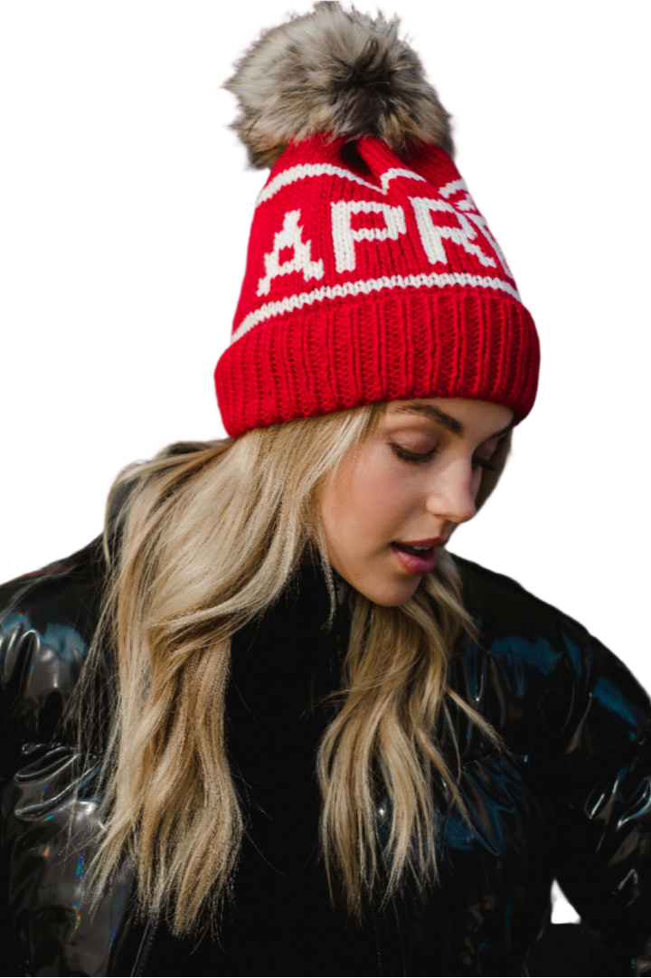 Get ready for some serious apres ski vibes with this Red & White Knit Hat! Featuring a cozy faux fur pom accent and soft fleece lining, you'll stay stylish and warm on the slopes.